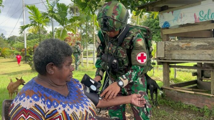 Papua – Pos Senggi Satgas Pamtas RI-PNG Statis Yonif 753/AVT berikan pelayanan kesehatan gratis bagi masyarakat yang membutuhkan di Kampung Senggi, Distrik Senggi, Kab. Keerom, Sabtu (28/06/2025).
