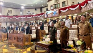 SANGATTA – Asisten Administrasi Umum Setkab Kutim, Sudirman Latif, Mewakili Bupati Kutim H. Ardiansyah Sulaiman, membacakan secara lengkap nota penjelasan pemerintah. Ia menegaskan bahwa Rencana Pembangunan Jangka Menengah Daerah (RPJMD) 2025–2029 disusun sebagai panduan arah pembangunan daerah berbasis pendekatan teknokratik, partisipatif, politis, top-down, dan bottom-up, dengan satu muara besar: mewujudkan Kutim yang Tangguh, Mandiri, dan Berdaya Saing.